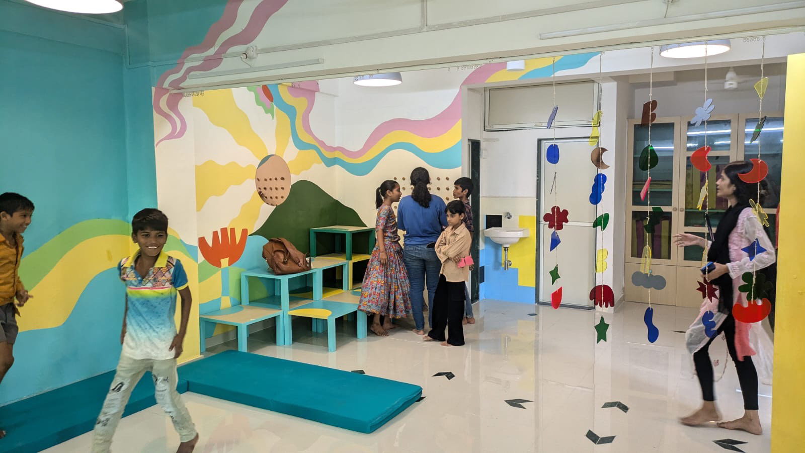 Built in 2022, Kitaab Mahal is a community space that inspires reading, with a dynamic collection of children’s literature. The community facilitators at Kitaab Mahal have captured the interest of children in books through storytelling.